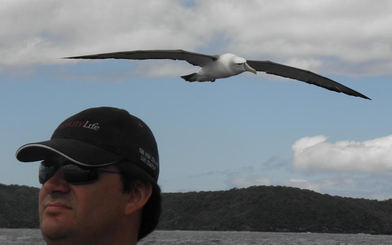 | A curious Northern Royal Albatross at sea off Kaikoura. |