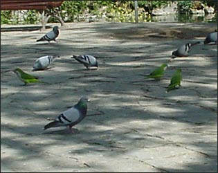 Parakeets with Feral Doves.