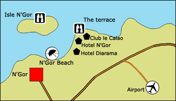 Diarama Hotel or the nearby bungalows at Club le Calao at N'Gor. The taxi